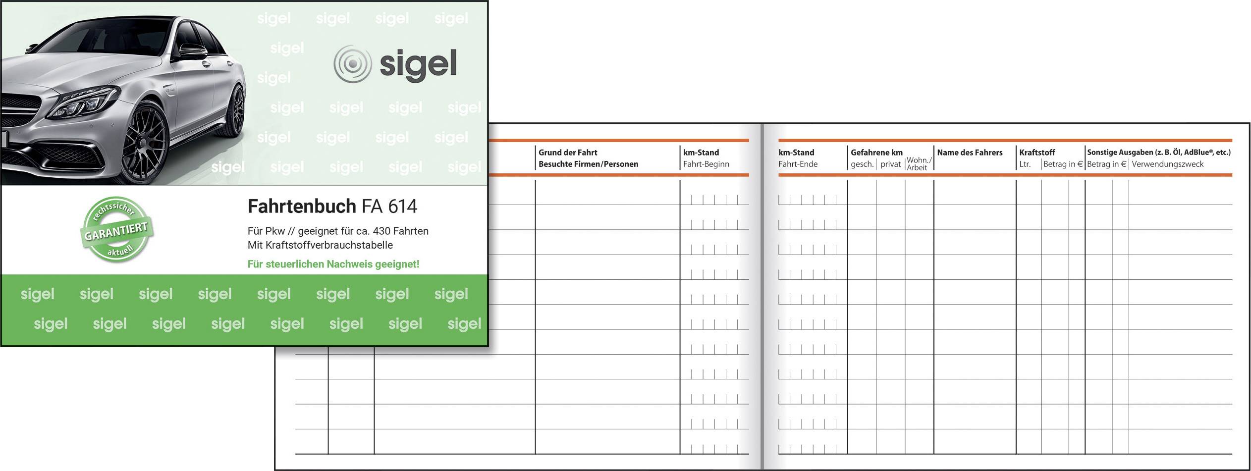 Sigel FA614 DIN A6 tværformat Kørselsbog Antal blade: 40 1 stk